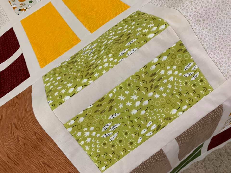 My plan is to quilt the “foxy” quilt below with a snuggly flannel backing using a free-motion meandering leaves pattern. Progress pics to come – of both the snowy weather and the quilt!